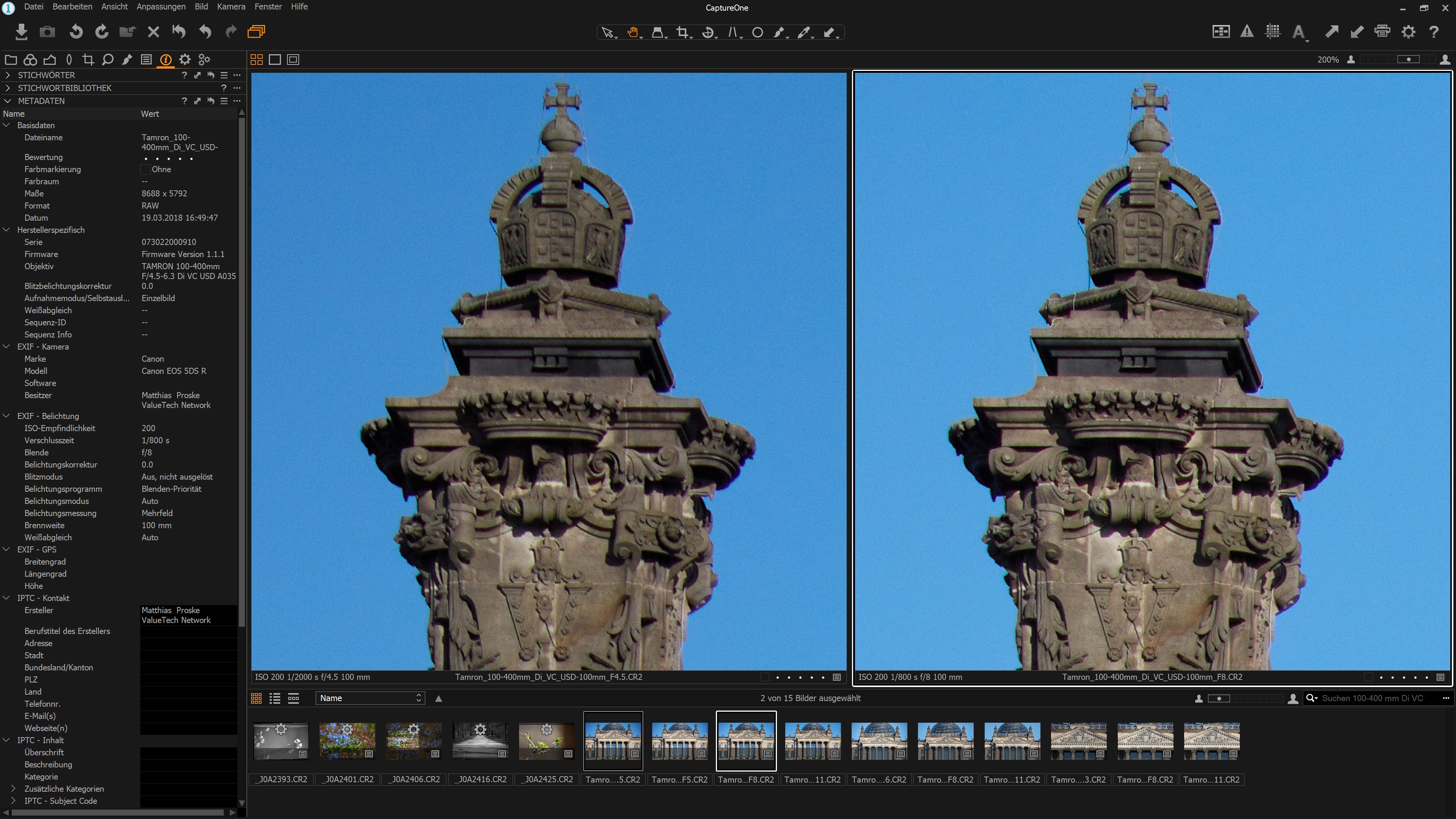 Die meisten anderen Fallstricke hat Tamron indes gut umschifft. Die chromatische Aberration (violette und grüne Farbsäume an harten Kontrastkanten) ist vor allem bei längeren Brennweiten praktisch perfekt korrigiert und die Vignettierung (Randabschattung) nur am Vollformat leicht sichtbar.