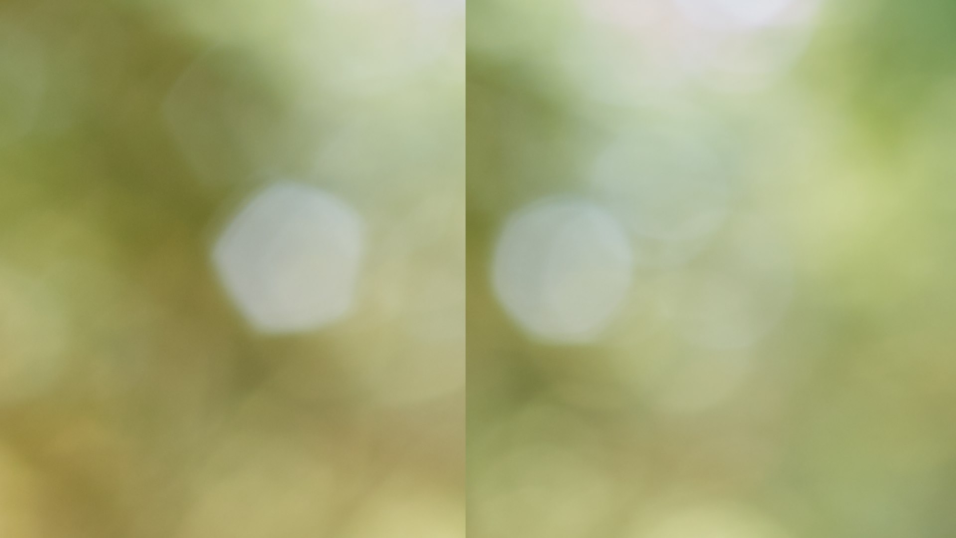 Das Bokeh - die "Schönheit des Hintergrunds" - war eine weitere, zentrale Baustelle bei Canons Überarbeitung. Hatte die Blende beim Vorgänger noch 5 Lamellen (deutlich an der Pentagon-Form links zu erkennen) setzt man nun auf 7 Blendenlamellen und schafft so ein deutlich ruhigeres, runderes Bokeh. Einsteiger in der Portraitfotografie wird dies sicherlich freuen.