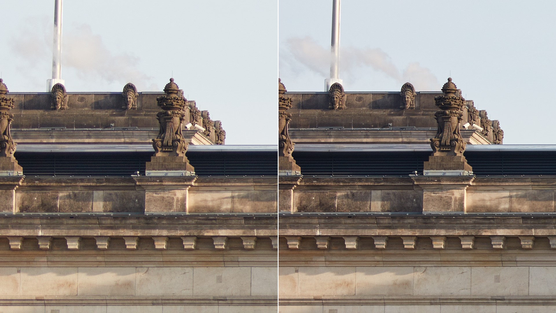 Weiter geht es mit guten Nachrichten im Bereich Bildschärfe: Bereits bei Offenblende f/1.4 liegt das Sigma auf einem sehr hohen Niveau. Ein Abblenden auf Blende f/2 erhöht im Bildzentrum den Mikrokontrast noch einmal sichtbar. Am Bildrand hingegen gibt es nur leichte Verbesserungen von Kontrast und Auflösung, angesichts der schon bei Offenblende guten Leistung ist dies jedoch kein Problem.