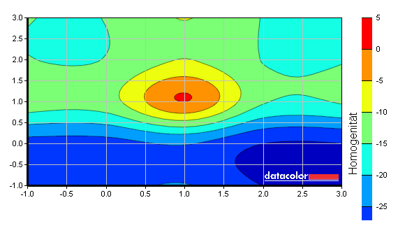 Die Homogenität der Ausleuchtung ist ebenfalls etwas schlechter als bei der 715er Reihe, zur Mitte sind es 8 bis 15 Prozent Helligkeitsabfall am oberen Rand respektive 29 bis 33 Prozent am Unteren. Nicht schlecht, aber eben auch nicht herausragend gut - Mittelmaß wenn man so will. Erfreulicherweise fällt der Unterschied jedoch im Alltag nur sehr selten auf und wenn dann auch nur bei genauem Hinsehen auf.