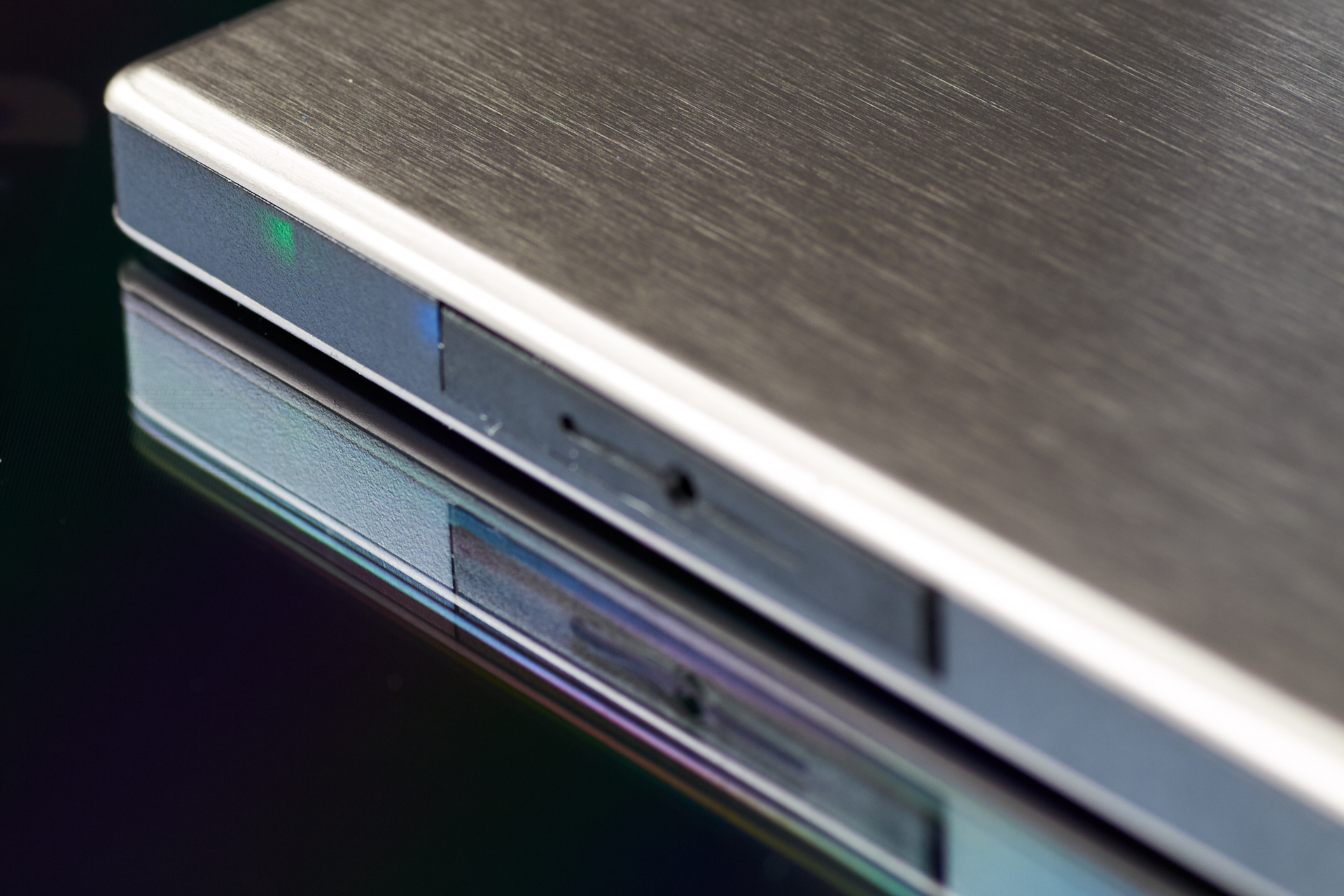 Die Daten werden nicht auf einem fest verbauten Flash-Speicher oder einer integrierten Festplatte, sondern auf einer handelsüblichen SD-Speicherkarte gespeichert. Die Karte wird neben direkt neben den Status-LEDs eingelegt, unterstützt werden offiziell leider nur SD und SDHC-Speicherkarten, sprich maximal Karten mit einer Kapazität von 32 GByte. Am PC eingesteckt fungiert das pqi Air Drive zudem als Kartenleser und kann auch so bespielt werden. Die LEDs geben einen kurzen Überblick über den aktuellen Zustand des Air Drive: Orange (wird geladen), Grün (Betrieb) und Blau (W-LAN Verbindung aktiv).