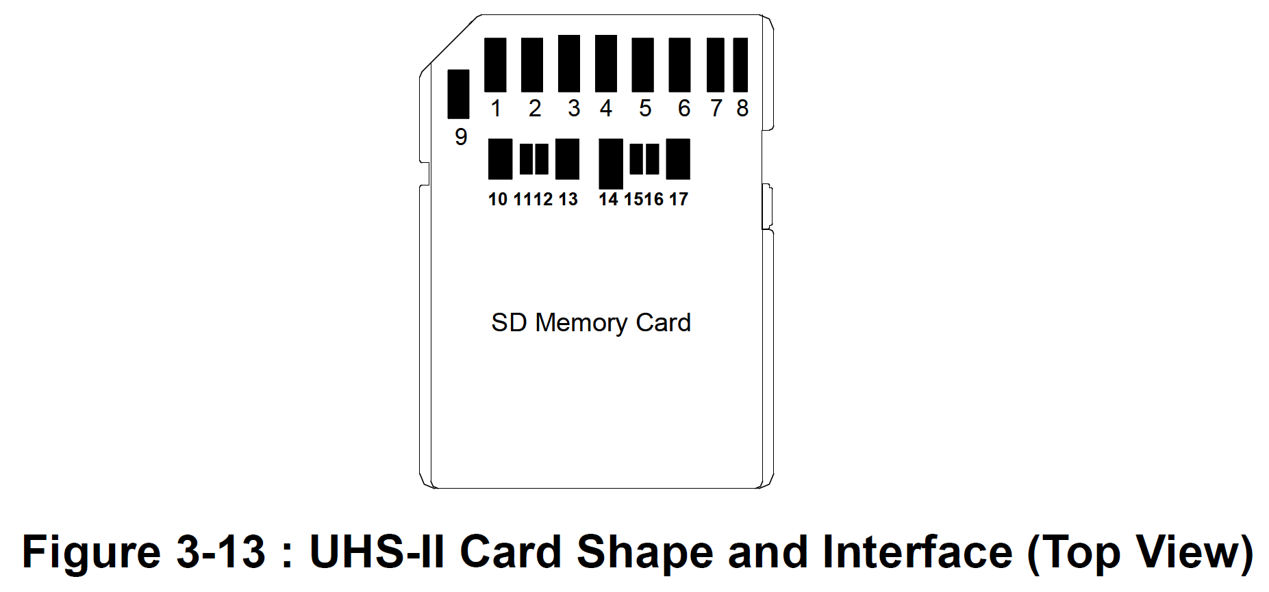 Diese machen zudem neue Kontakte auf der Rückseite der Speicherkarte notwendig. Diese werden nicht etwa zusätzlich benutzt sondern vielmehr stattdessen. Lediglich die Kontakte 4, 7 und 8 (siehe Abbildung) werden noch zur Stromübertragung respektive Signalgebung benutzt, der Rest liegt im UHS-II-Betrieb brach.