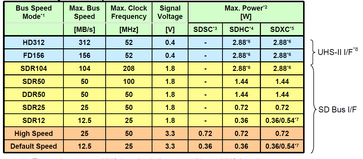 UHS steht für Ultra High Speed und spezifiziert als erstes zwei Generationen für die Übertragung der Daten zur und von der Speicherkarte, das bereits seit gut vier Jahren am Markt befindliche UHS-I und jetzt UHS-II. Diese lösen die alten Übertragungsstandards HS (High Speed @25 MB/s) und DS (Default Speed @12,5 MB/s) ab. UHS-I ging dabei den einfacheren Weg und man erhöhte die Taktrate der Schnittstelle von 25 (DS) respektive 50 MHz (HS) auf nunmehr ganze 208 MHz. Dies hat jedoch eine recht hohe Leistungsaufnahme zur Folge, weshalb der Einsatz bei mobilen Endgeräten wohl auch immer noch zu wünschen übrig lässt. UHS-II ist vom rein technischen Hintergrund die wahre Neuerung, denn die in ihrer Gesamtheit SD Bus I/F genannte Schnittstelle wird durch die komplett neue Schnittstelle UHS-II I/F ersetzt. Diese geht weg von der betagten 1,8 V respektive 3,3 V Signalgebung hin zu einer modernen mit 26 bis 52 MHz Referenztakt und Multiplikatoren mit 0,4 V Signalspannung.
