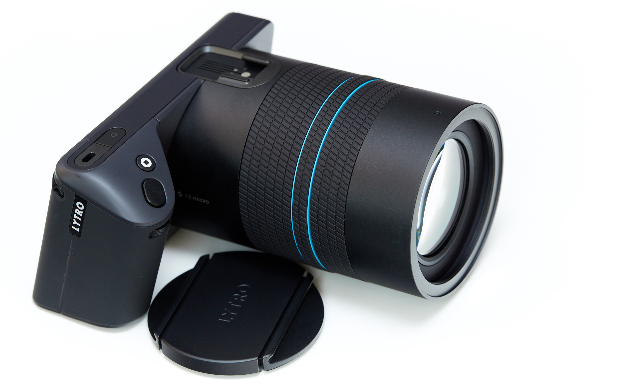 Äußerlich sieht Lytros erste große Lichtfeldkamera einer DSLR- oder Bridge-Kamera mit großem Objektiv nicht unähnlich. Mit einem Gewicht von 940 Gramm wirkt die Kamera, dank ihrer Größe, sogar sehr leicht und liegt auch trotz der etwas ungewohnten Formgebung gut in der Hand. Nur eine etwas griffigere Gummierung hätten wir uns gewünscht. Das fest verbaute Objektiv bietet eine Brennweite von 30 - 250 mm (entsprechend KB) mit einer konstanten Blende von f/2.