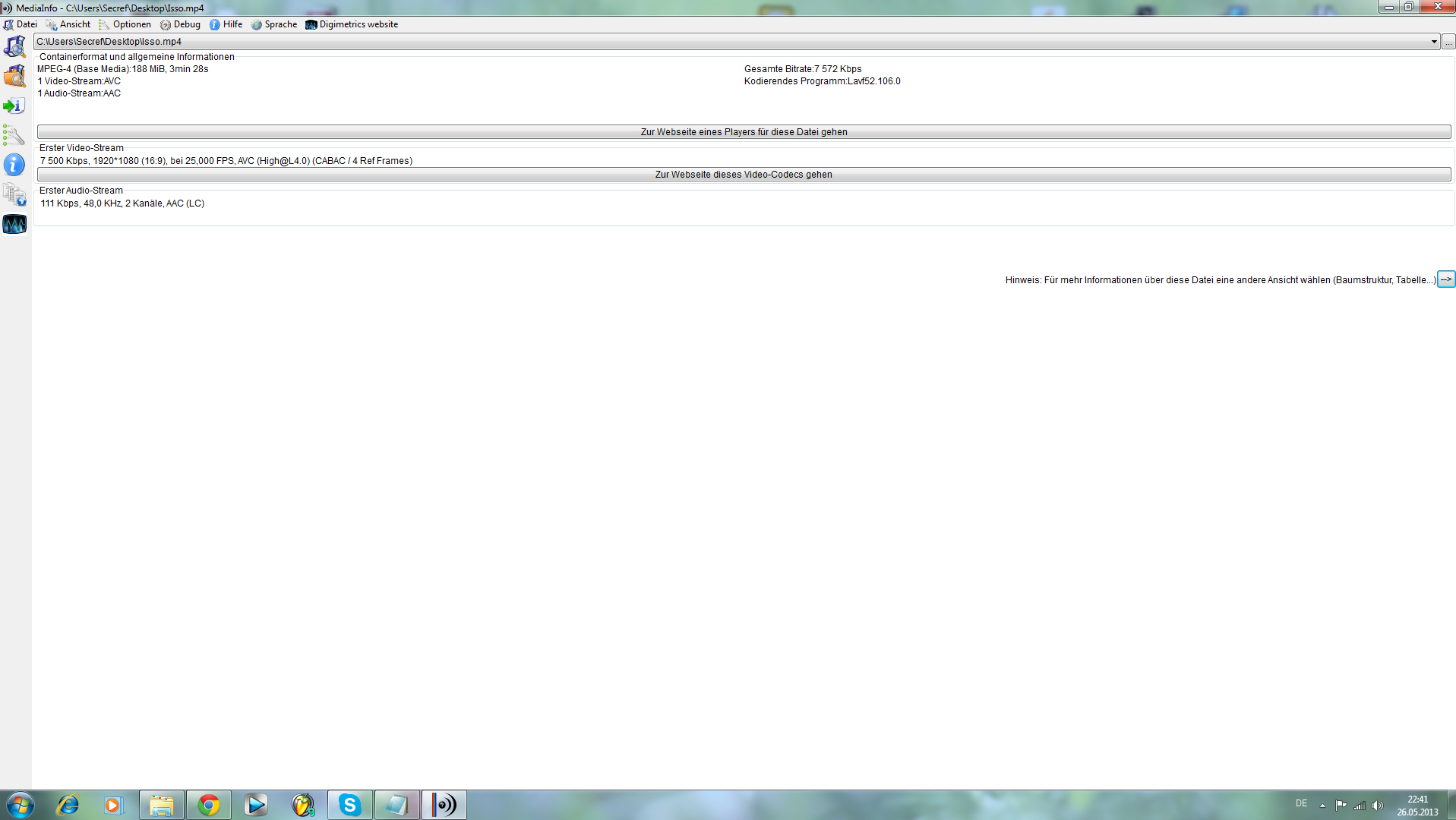 Genau. MediaInfo ist ein Programm welches, wie der Name schon vermuten lässt, (sehr) detaillierte Informationen zu Multimediadateien ausliest. Das geht teilweise bis zu den genauen Encoding-Einstellungen.