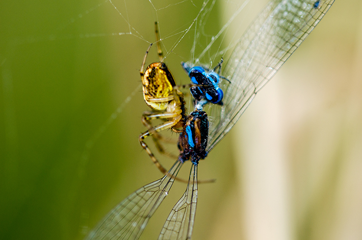 1. Bild zeigt eine Spinne, welche eine Libelle frisst. (Die Libelle ist eine Azurjungfer^^)