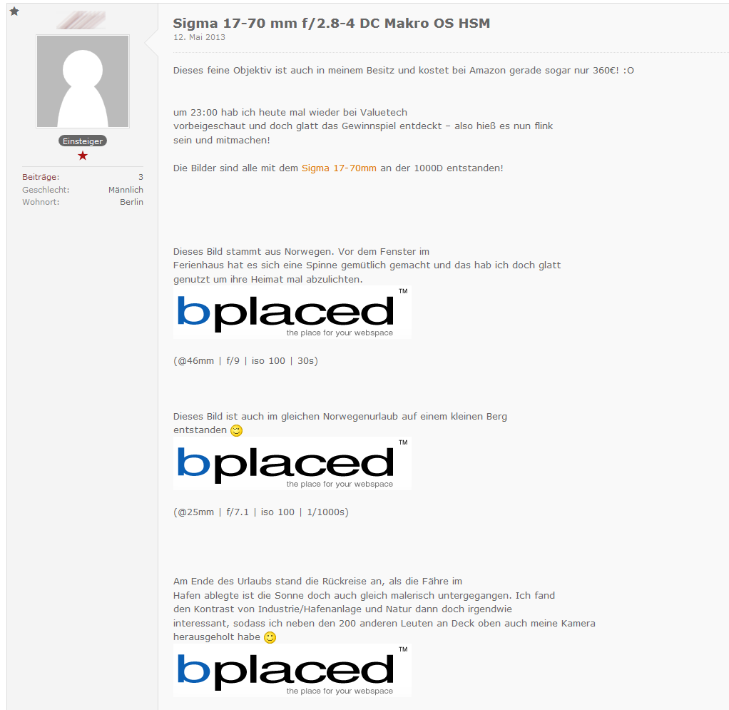 Diese Maßnahme soll unter anderem verhindern, dass Beiträge nach wenigen Monaten oder Jahren nicht mehr nachvollziehbar sind (siehe Anhang). Ferner ermöglichen uns lokal hochgeladene Bilder ein einheitliches Nutzererlebnis über alle Endgeräte und Schnittstellen (z.B. für Tapatalk) hinweg.