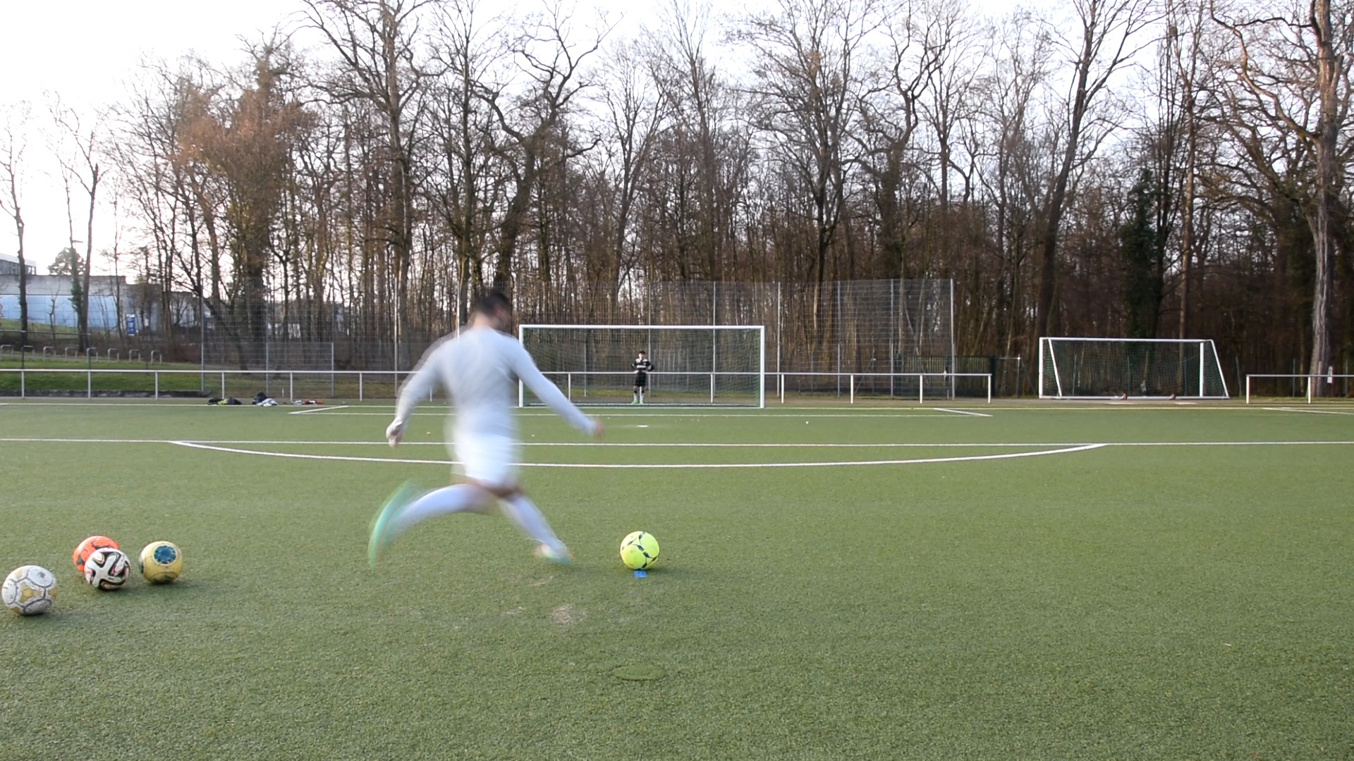 Wenn du also ein Bild machst mit einer Verschlusszeit von 1/25 oder 1/50 entsteht genau so ein Bild. Das liegt an der schnellen Bewegung des Fußballers. Möchtest du ein Scharfes Bild hinbekommen solltest du die Belichtungszeit +, - auf 1/500 setzen.