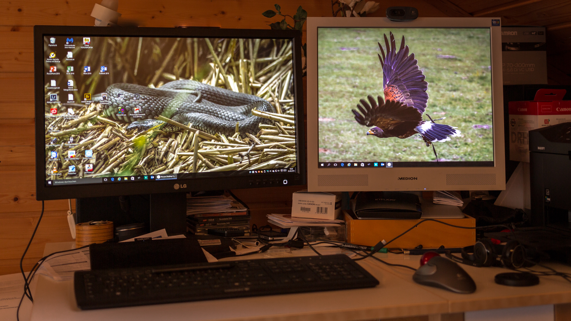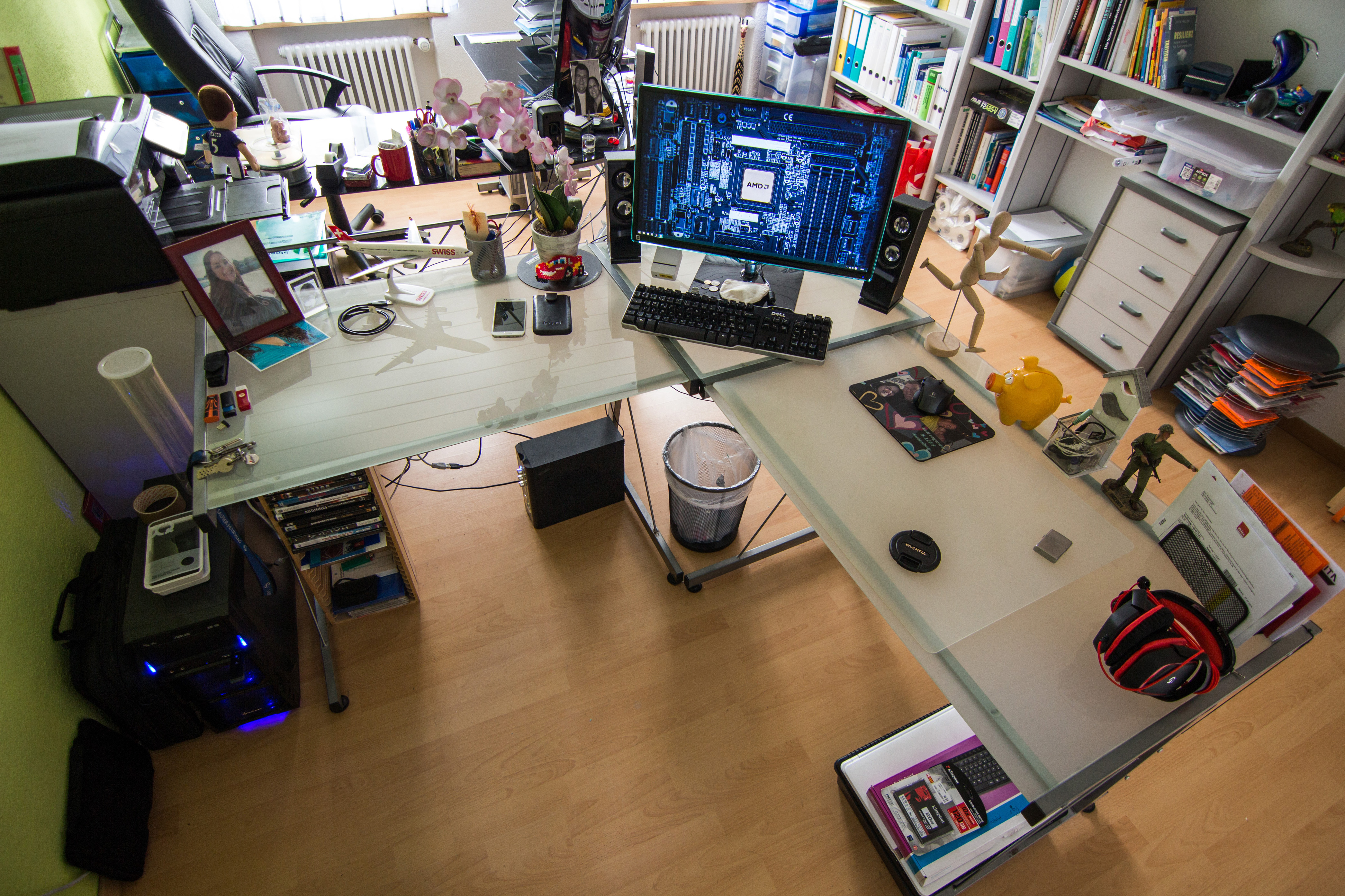 Manchmal, wenn ich eine Antwort von einem User bekomme, frage ich mich immer, wie der denn so lebt, an seinem Schreibtisch. Ich finde das Thema spannend und darum habe ich mal diese Thread eröffnet. Vielleicht finden sich ja ein paar Leute, die gerne mal zeigen, wie sie so an ihrem Schreibtisch arbeiten und tippen.