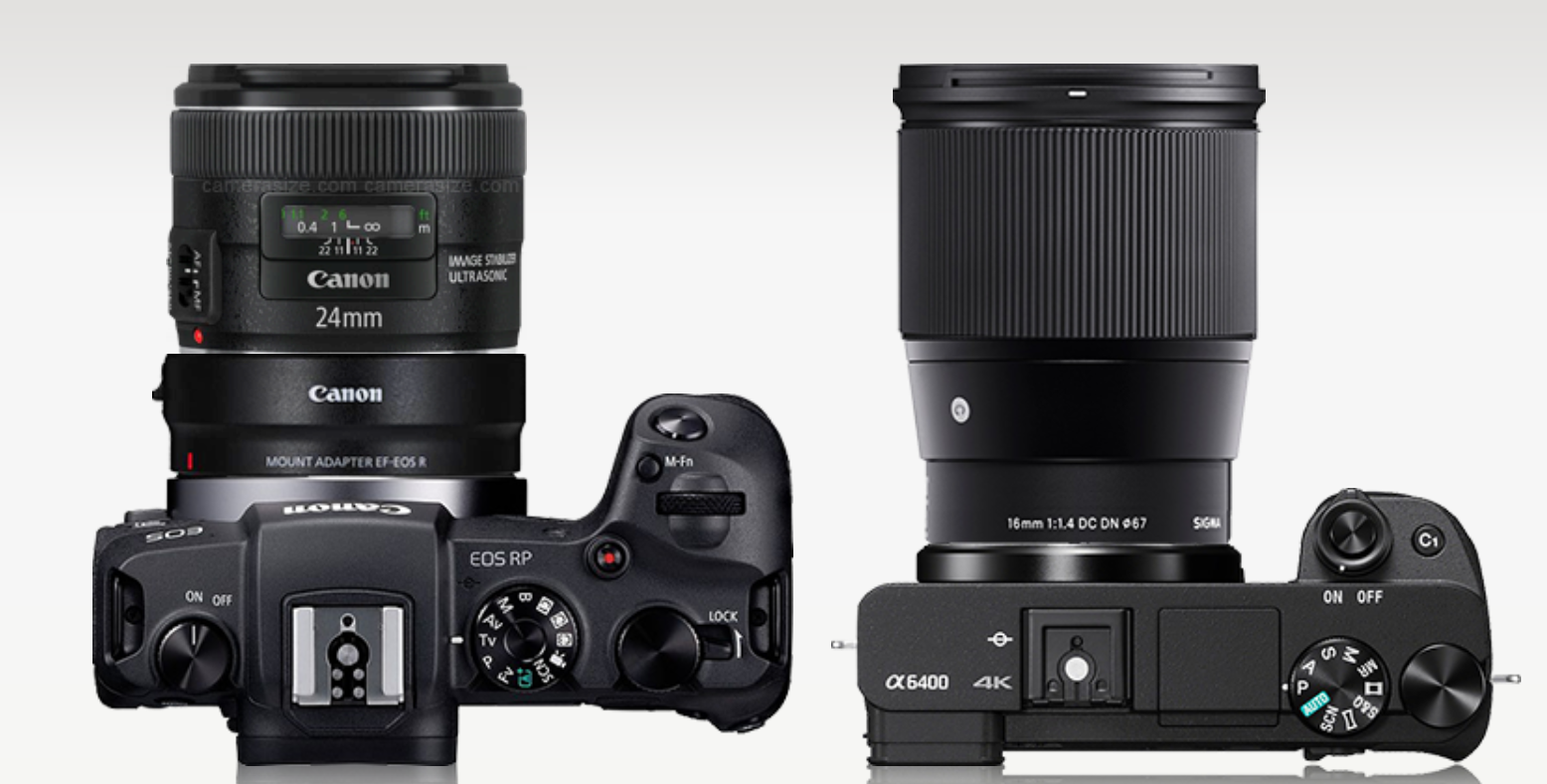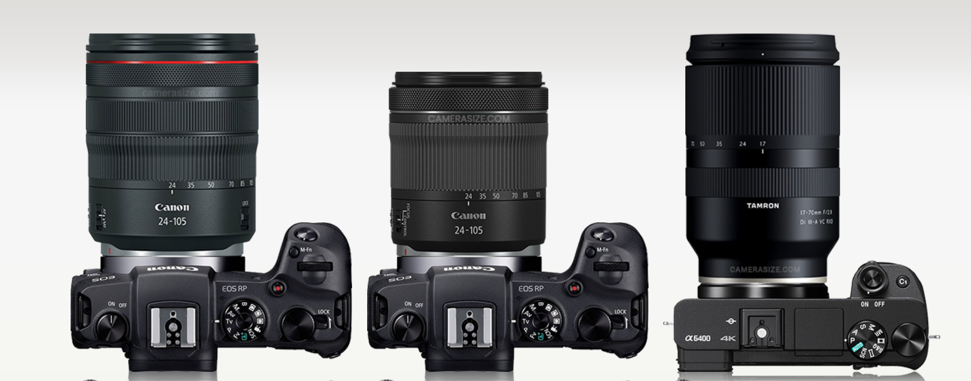 Also mit den Informationen könnte man an der Stelle bezüglich Gewicht und Kompaktheit eine konkrete Gegenüberstellung machen: Je nachdem für welches 24-105 Kit du dich entscheiden würdest, wäre die EOS RP sogar leichter oder etwa 300g schwerer als die a6400 mit dem lichtstarken Tamron. Hier mal ein Größenvergleich dieser drei Optionen: