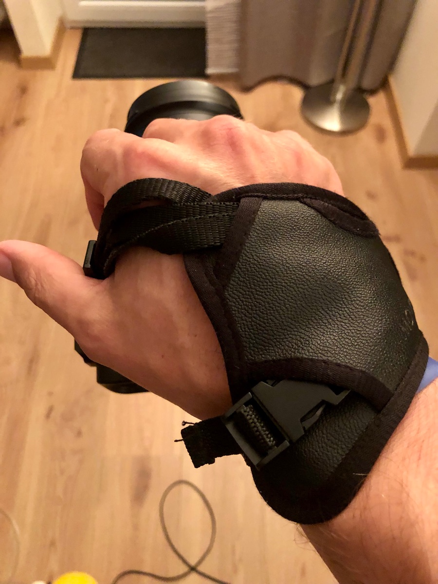 An der Schlaufe trage ich sowohl die 5D oder 90D mit meinen sämtlichen Objektiven mehrere Stunden am langen Arm.