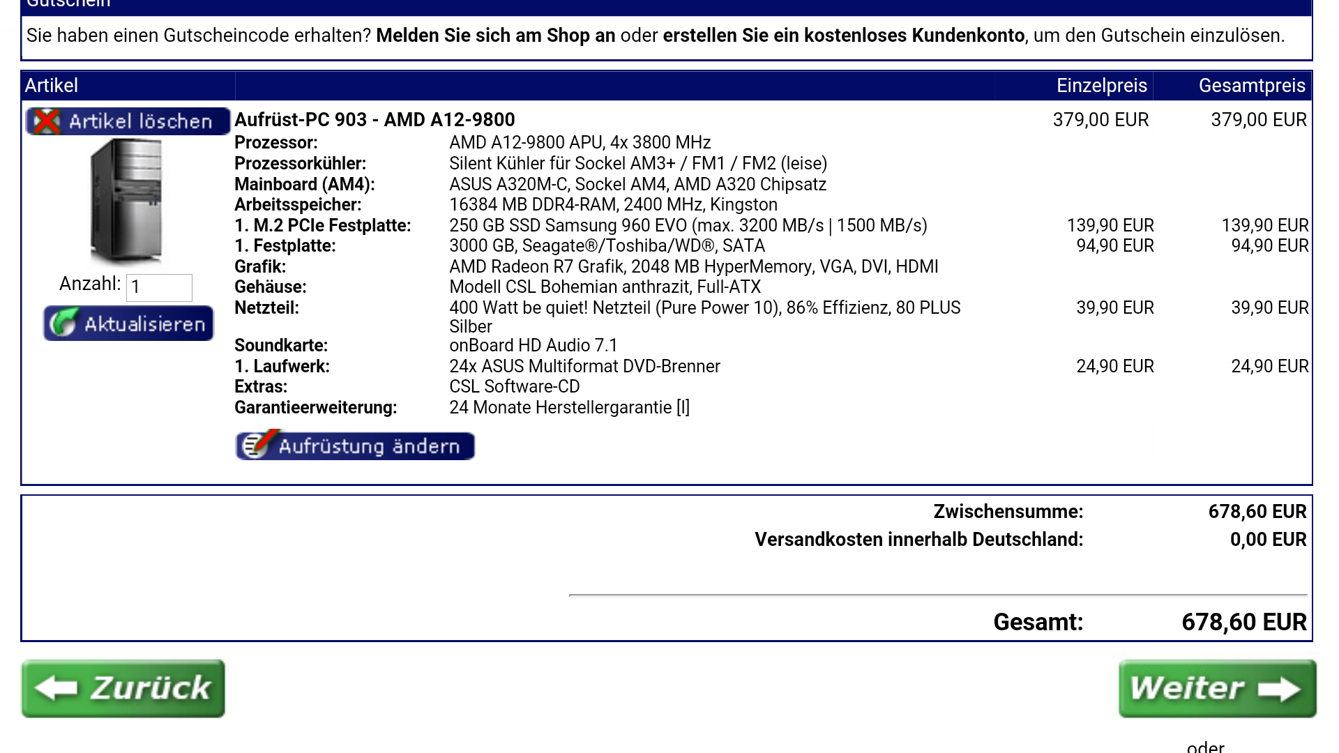 Ich habe mal versucht, mich in das Thema einzulesen. Das hier ist mein bisheriger PC samt Netzteil: