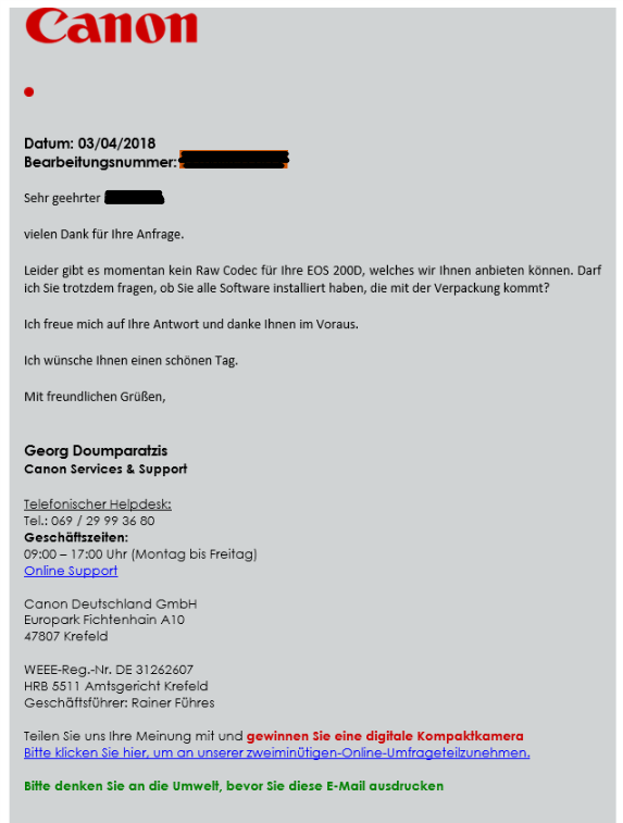 Mein Problem ist folgendes, seit ich die EOS 200D habe, habe ich im Windows 10 Explorer keine Vorschau mehr. Bei meiner 1200D, konnte ich mir die Bilder ohne weiteres angucken.