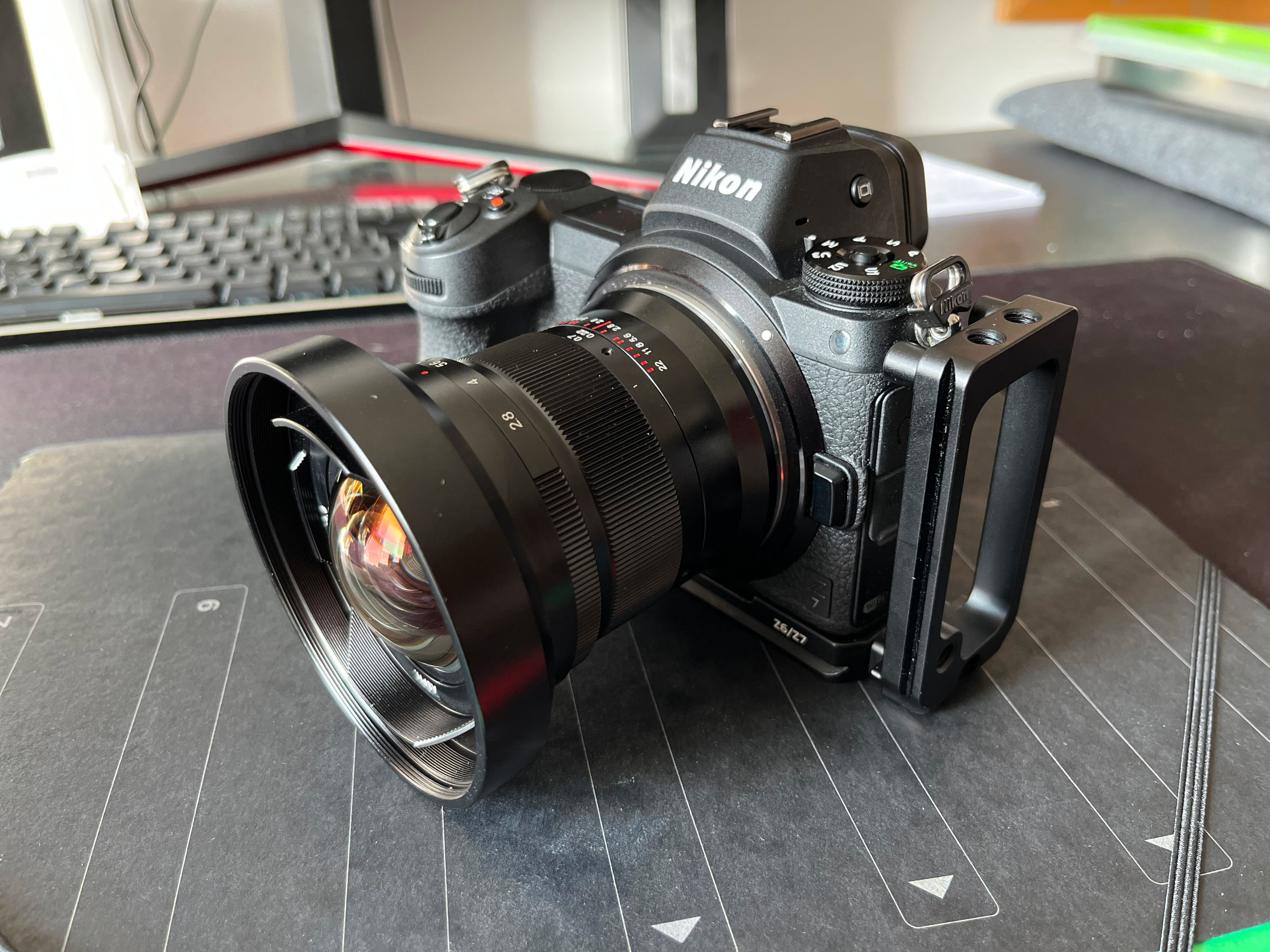 Pergear MF 14mm f2.8 Mark II an der Nikon Z7. Auf dem Objektiv befindet sich der optionale Halter für 82mm Filter. Ich bilde mir ein, dadurch die Linse etwas besser zu schützen.